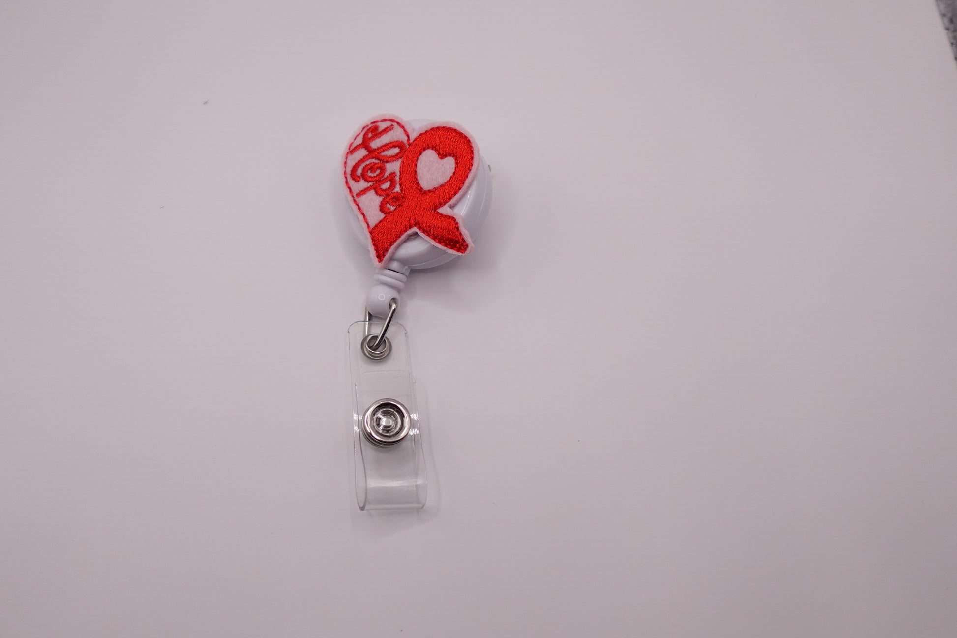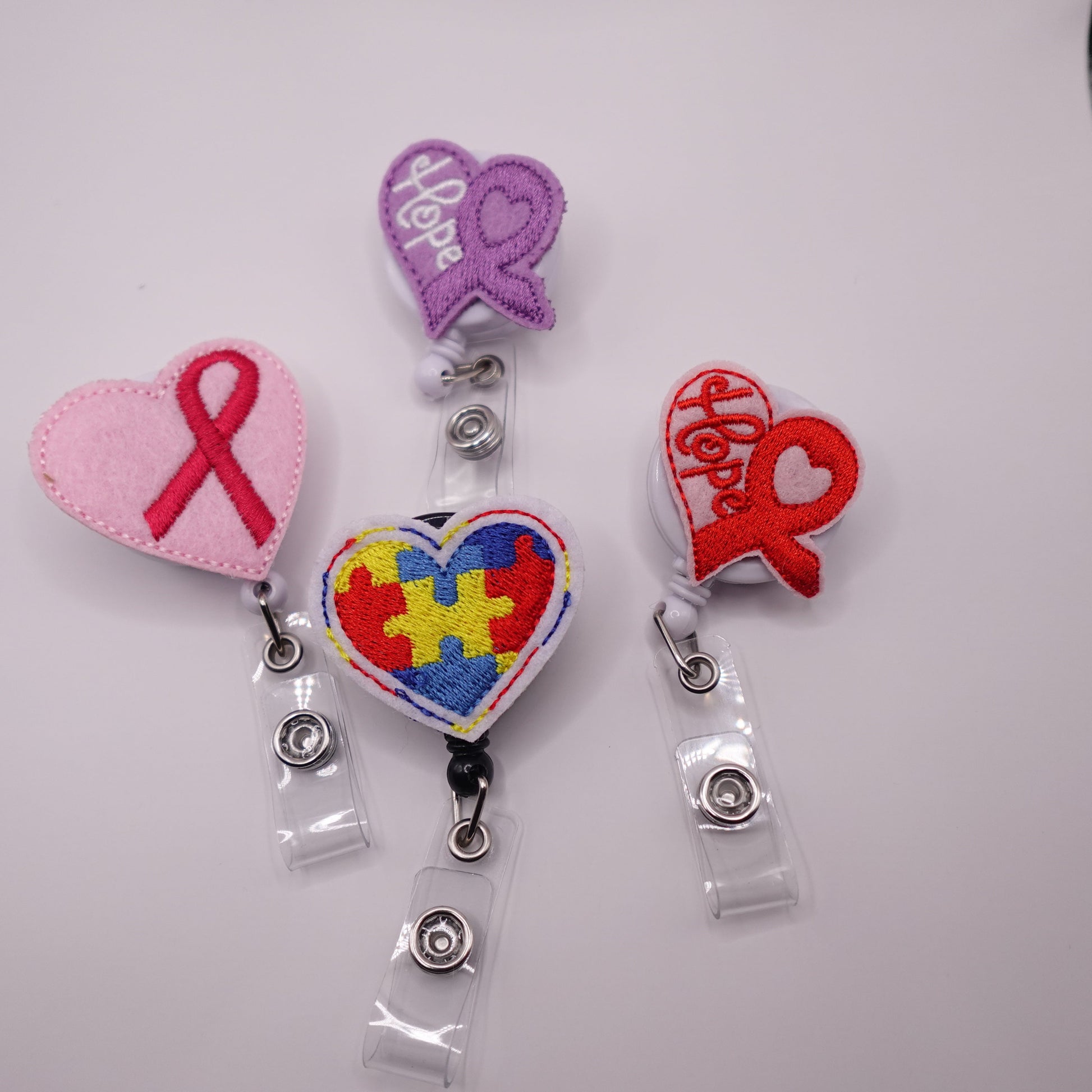 Multi-colored cloth hearts. The badge reel has an alligator swivel clip with press and clip style clamp. Each badge reel comes individually wrapped.