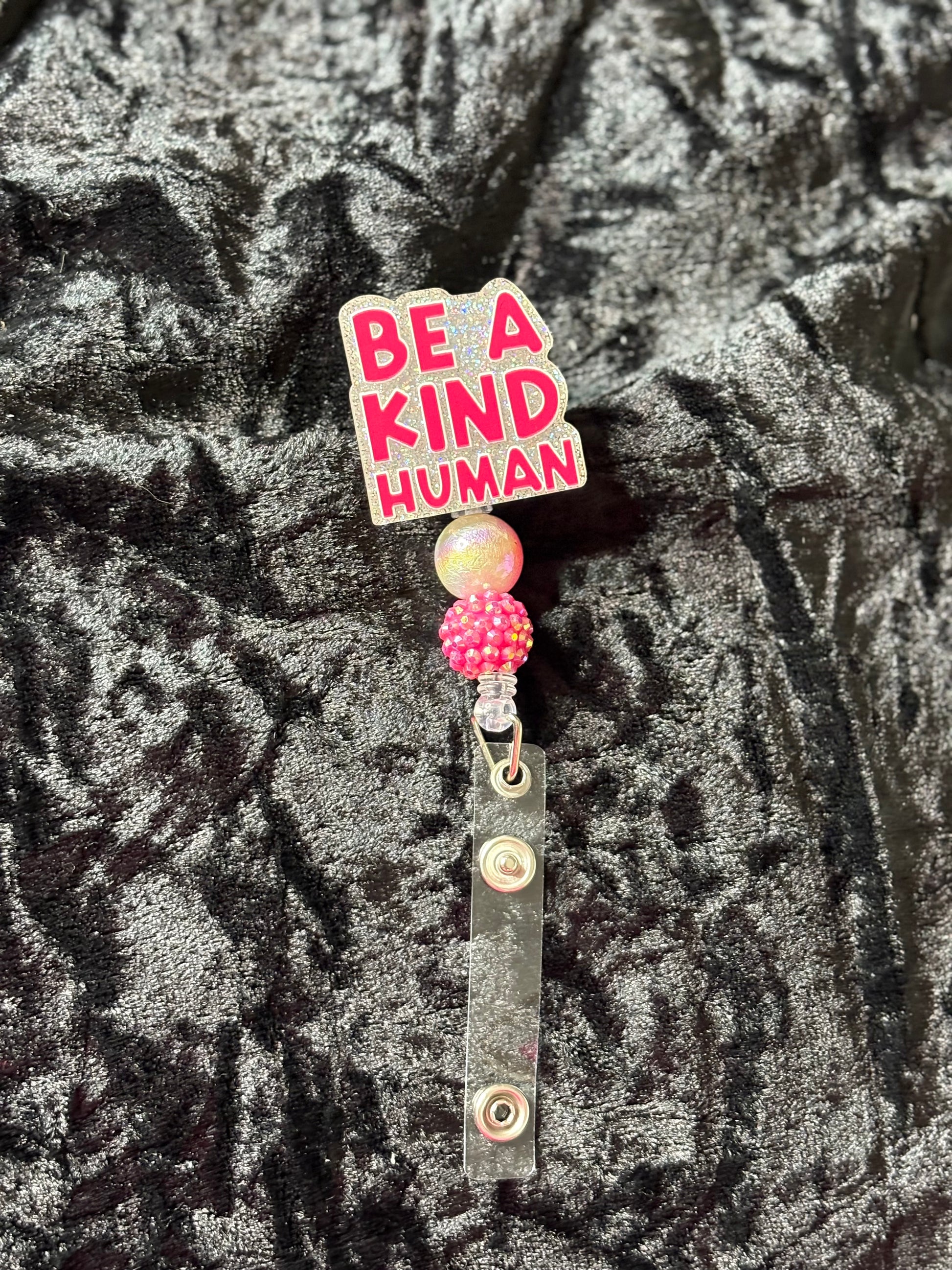 The reel has silver glitter, hot pink words outlined in white, with sparkly beads attached to the bottom. The badge reel has an alligator swivel clip with press and clip style clamp. Each badge reel comes individually wrapped.