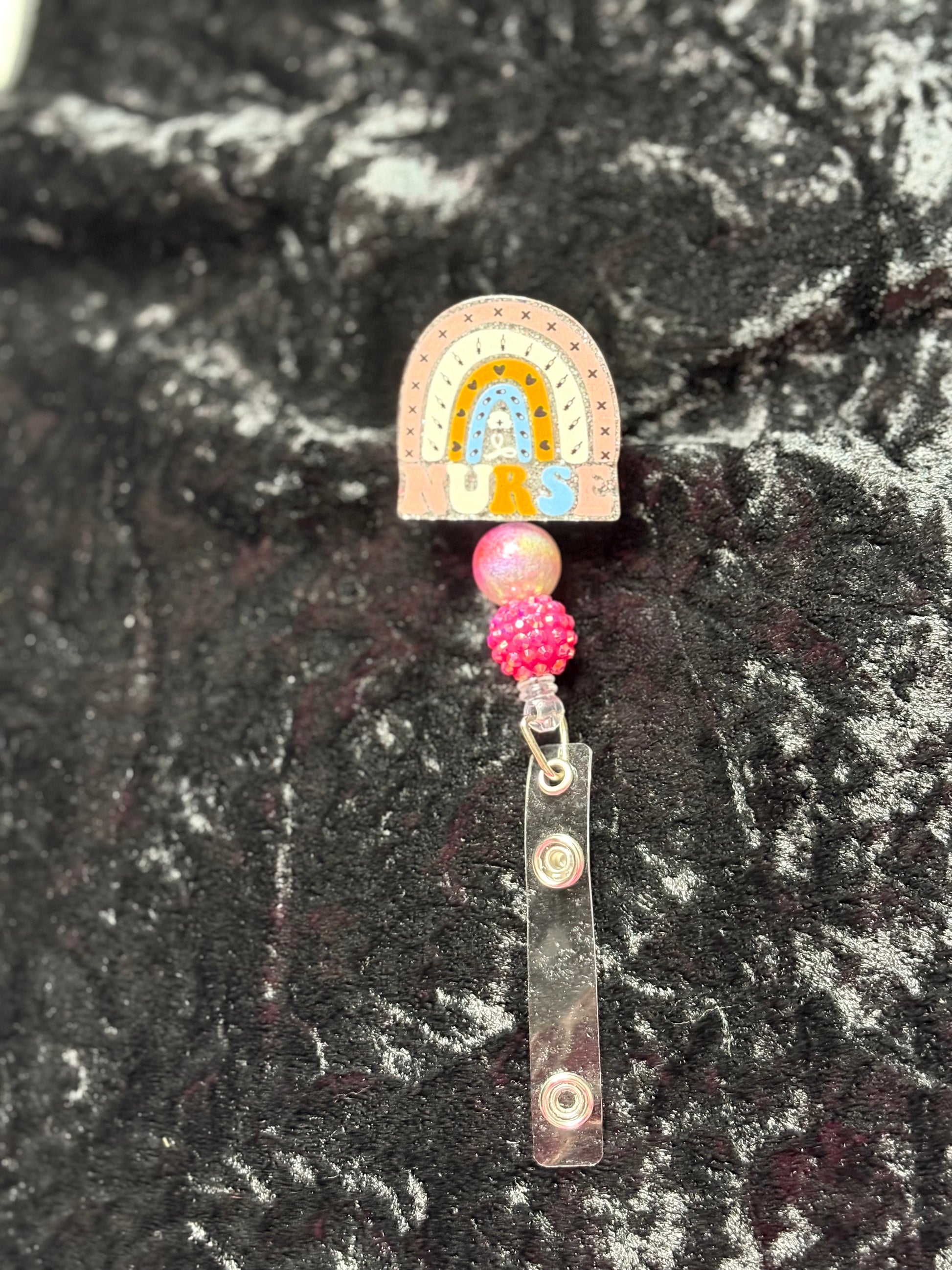 The reel has silver glitter, multi-colored words, with little heart/syringes/pills designs, with sparkly beads attached to the bottom. The badge reel has an alligator swivel clipwith press and clip style clamp. Each badge reel comes individually wrapped.